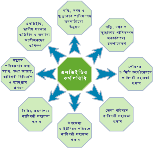নিচের চিত্রের মাধ্যমে এলজিইডির কর্ম পরিধি দেখানো হলো -